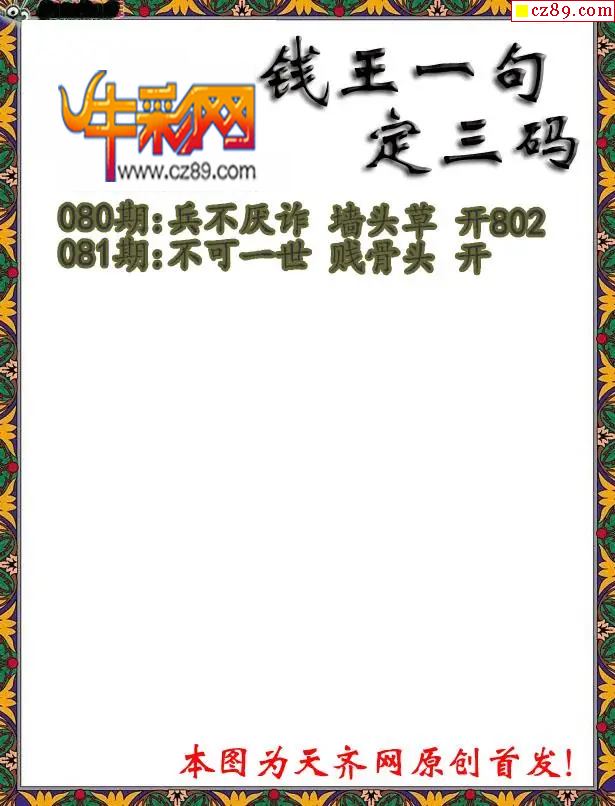 > 福彩3D2026081期钱王一句定三码字图谜