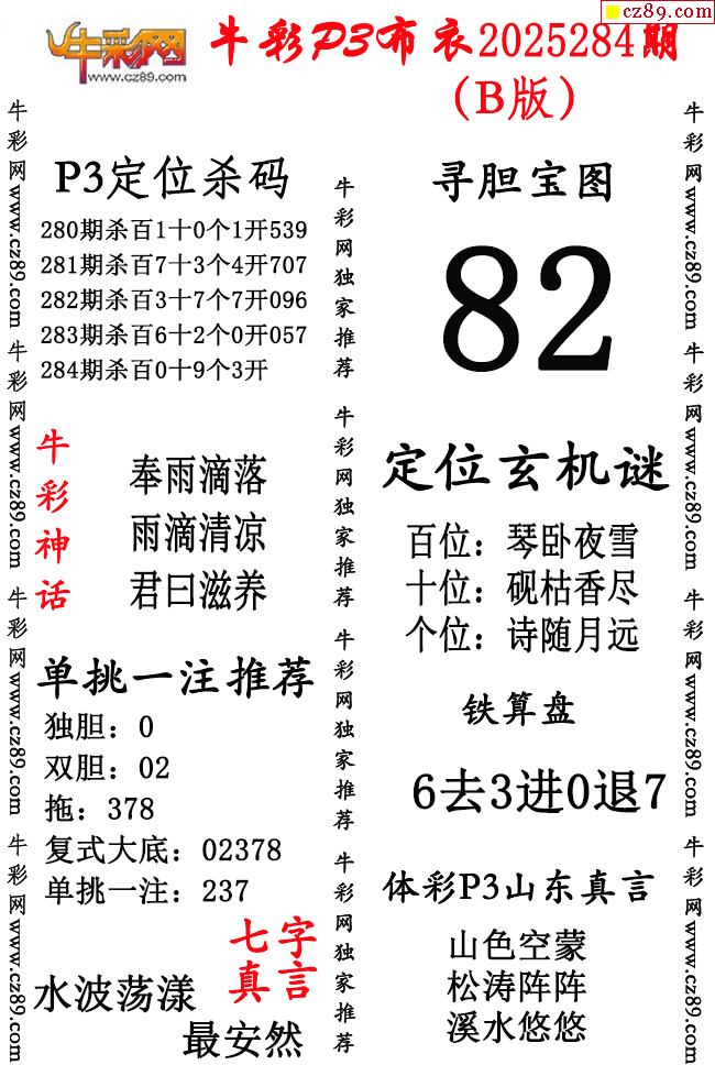 牛彩P3布衣25年284期AB版图谜(精华版)